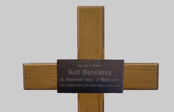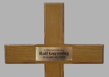Beschriftung direkt auf dem Kreuz      Lasergravierte Messingplatte